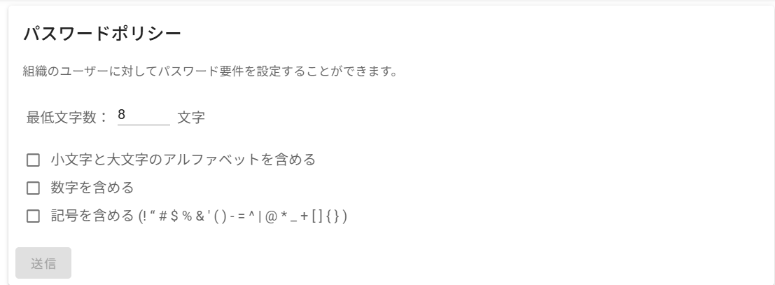 パスワードの長さに関する設定