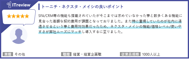 ネクスタ・メイシはアイティクラウド株式会社が運営する国内最大級のIT製品/SaaSのレビューサイト「ITreview」の「ITreview Grid Award 2026 winter」の名刺管理ソフト部門において、ユーザー満足度、認知度ともに高い製品として「LEADER」を4期連続で受賞いたしました。